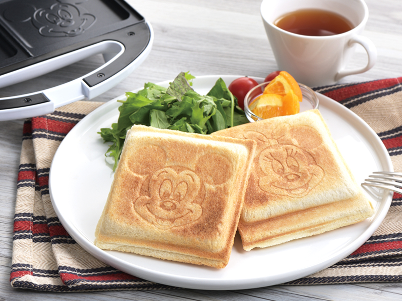 ミッキーとミニーのフェイスの焼き目がついた可愛いホットサンドが出来上がります。ボリュームがあるからホームパーティーやちょっとした集まりでも活躍しそう!
